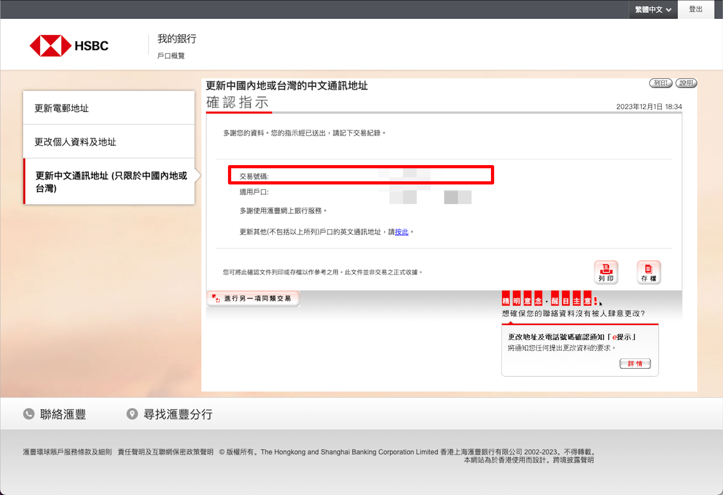 这篇文档记录一下在 2023 年的时候如何给 HSBC HK 的账户更新和配置中国内地的联络地址。