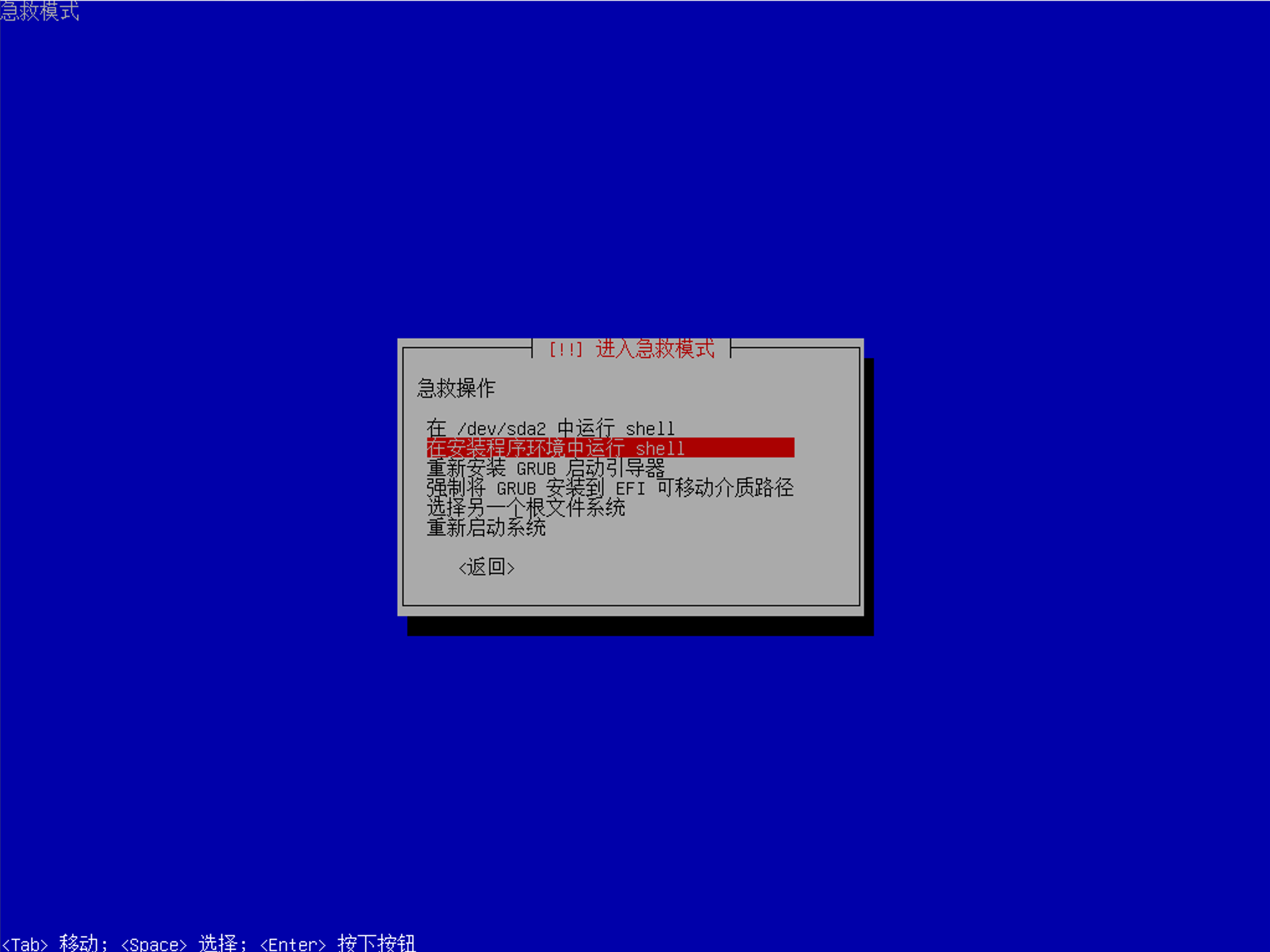 然后选择「在安装程序环境中运行 shell」就可以启动了: