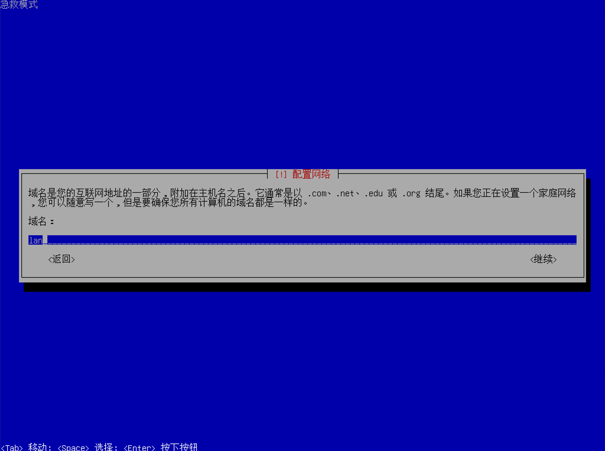 然后会提示输入域名,一般情况下,直接填写 lan 就好了: