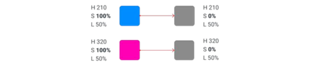 没有饱和度时,色调是无效的——当饱和度为0%时旋转色调实际上不会改变颜色。