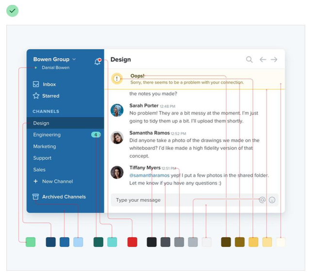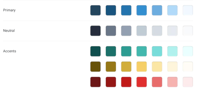 大多数现有的应用程序基于几何概念(如互补色或三角排列)生成配色方案。虽然这些方案可能适用于徽标或传统平面设计,但它们往往不适合UI设计。在UI设计中,你通常需要使用一些基本颜色(通常由品牌指南规定)以及各种阴影和变化。