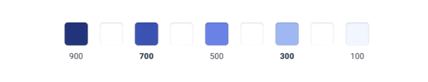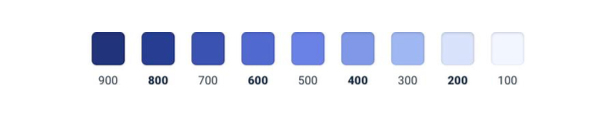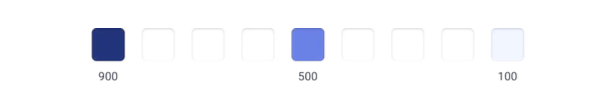 9 是一个很好的数字,因为它很容易分割,而且填色也更简单。我们把最深的色调称为 900,基本色调称为 500,最浅的色调称为 100。