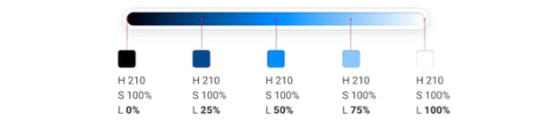 它衡量颜色接近黑色或白色的程度。0% 亮度是纯黑色,100% 亮度是纯白色,而50% 亮度是在给定色调下的纯颜色。