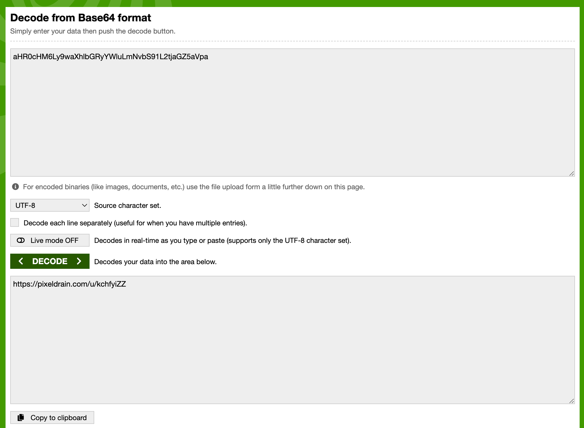 阅读着阅读着就看到了这么一篇帖子回复,里面提及了 UPDATED LINK(更新后的链接),我理解是补档吧,乍一看还是一个 base64 编码过的字符串: