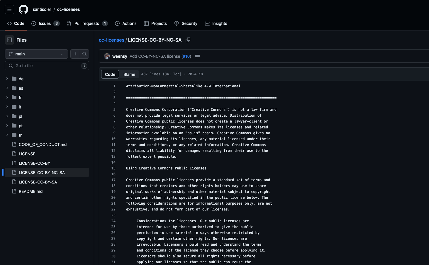 如果我们在我们所复制出来的 CC 协议来源的 Repository santisoler/cc-licenses: Creative Commons Licenses for Github 中搜索,是可以看到有别人提出过类似的问题的: