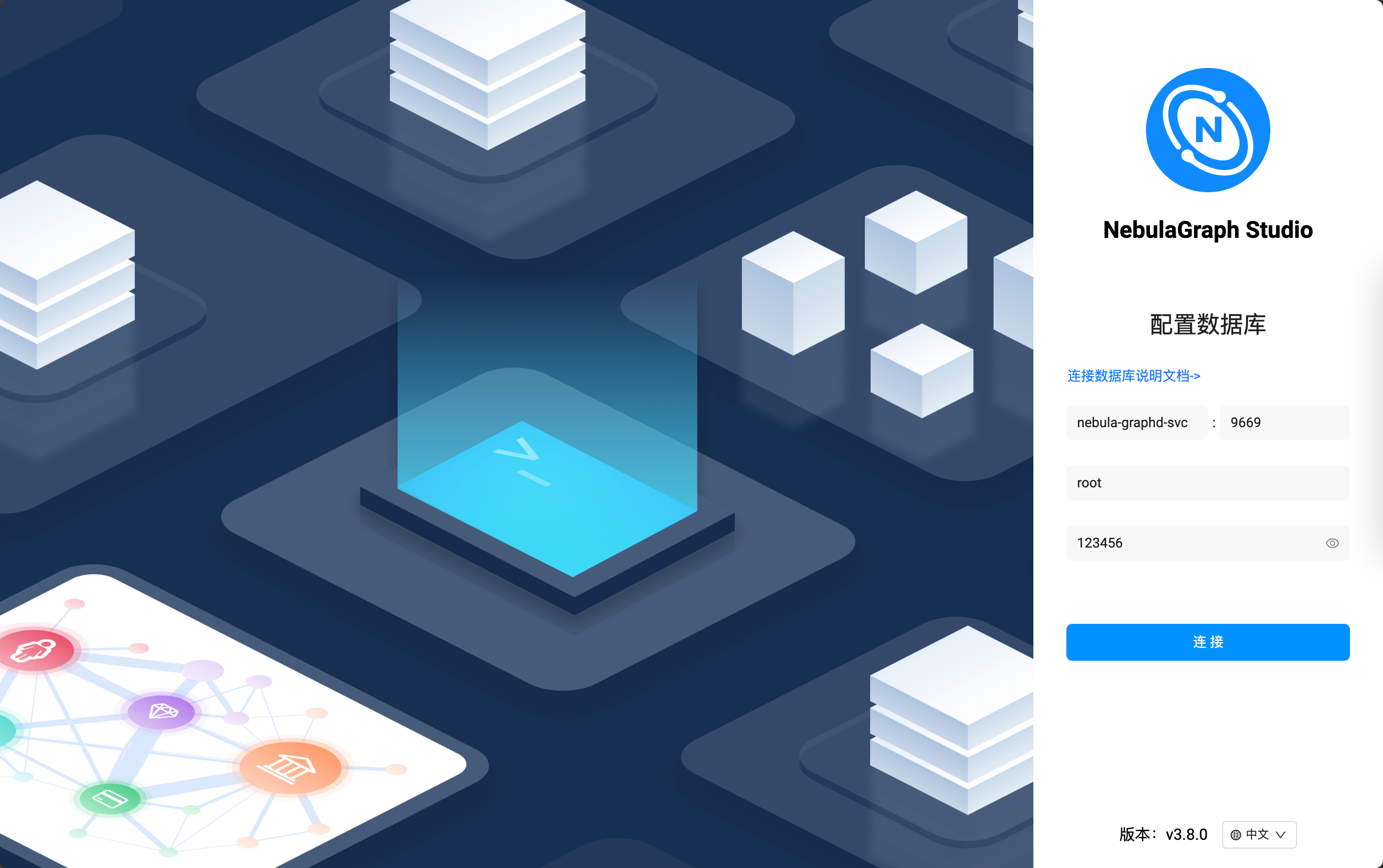 nebula-studio-service ClusterIP 10.96.122.0 <none> 7001/TCP 66m然后填写 Service 的名称到 Graphd IP 地址的字段里,用户名填写 root,默认配置下,密码随便填,就可以通信啦: