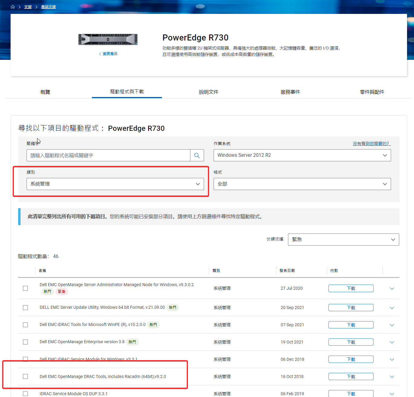 下载 Dell EMC OpenManage DRAC Tools, includes Racadm (64bit),v9.2.0
