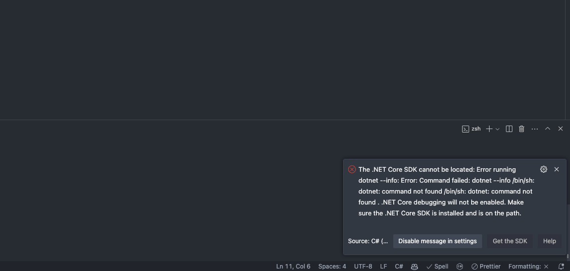 - can use dotnet in command but cannot be located in vscode on mac os · Issue #6631 · dotnet/sdk