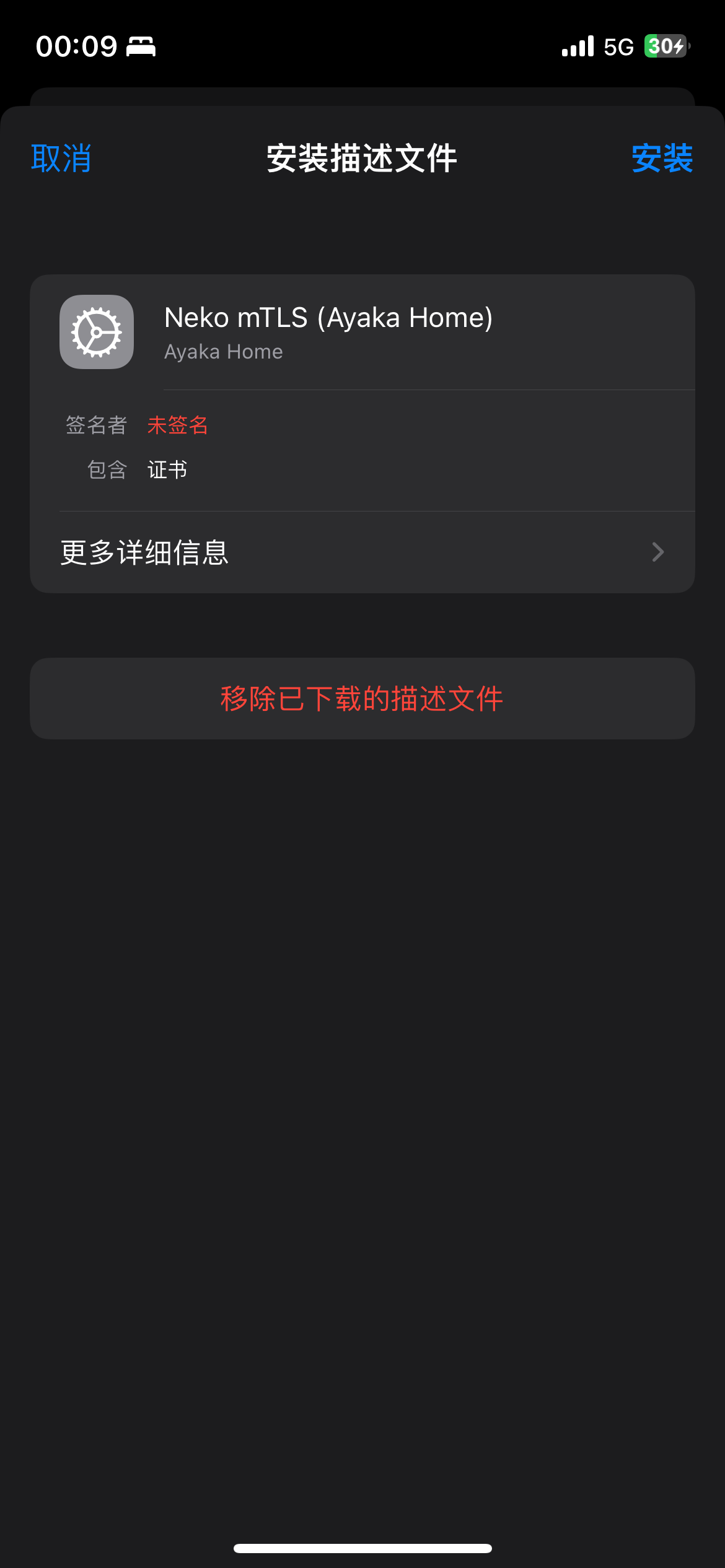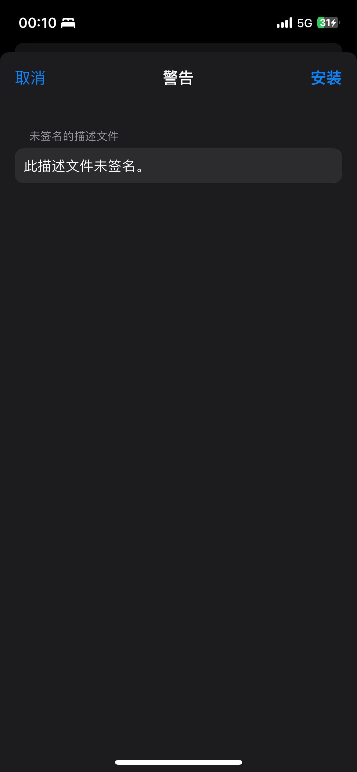 会提示说没有签名,这是正常的,毕竟我们没有 MDM 主体,我们继续点击安装: