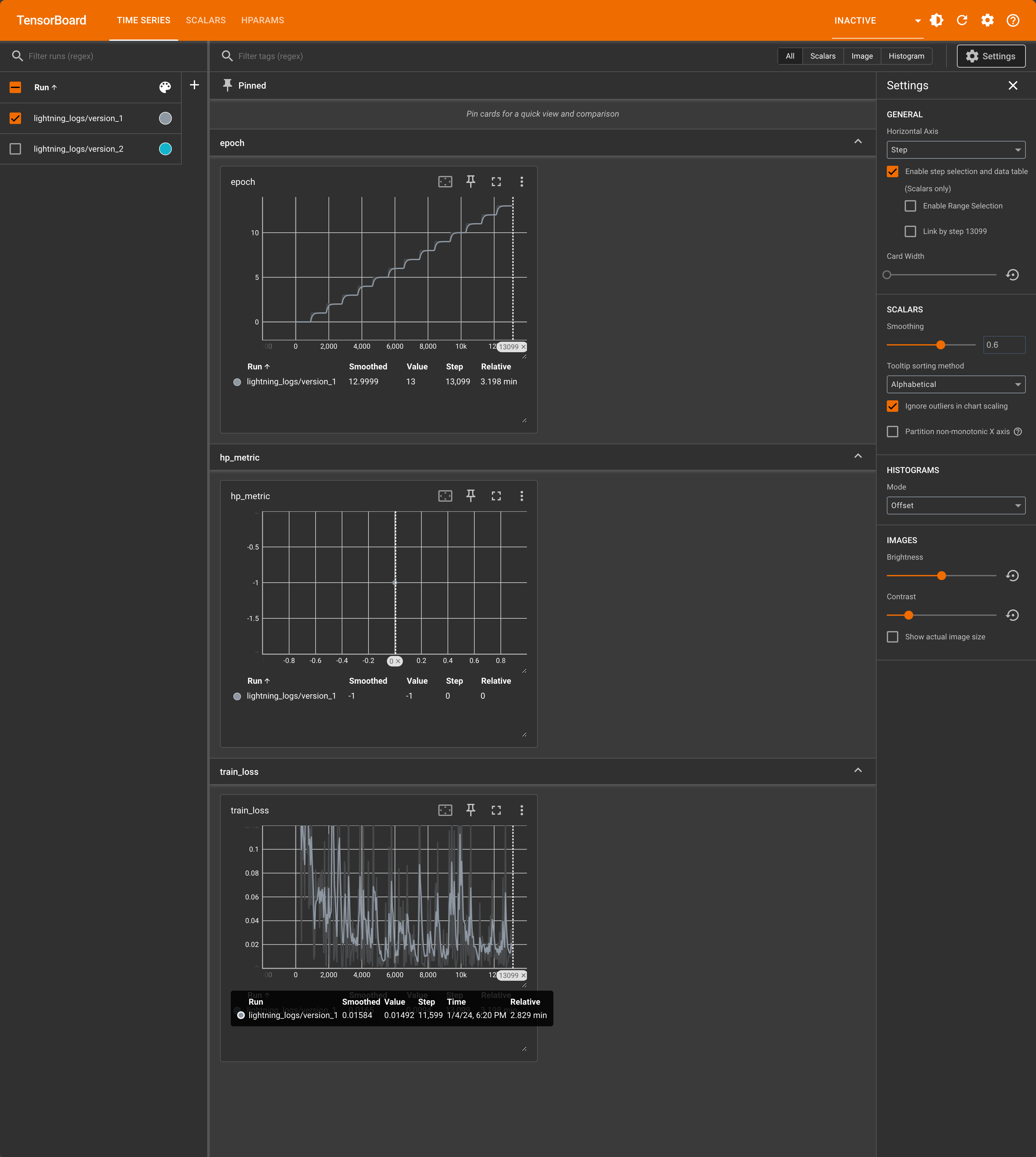 Epoch 13: 100%|█████████████████████████████████████████████████████████████████████████████████████████████████| 938/938 [00:13<00:00, 70.69it/s, v_num=1]用 TensorBoard 查看训练进度